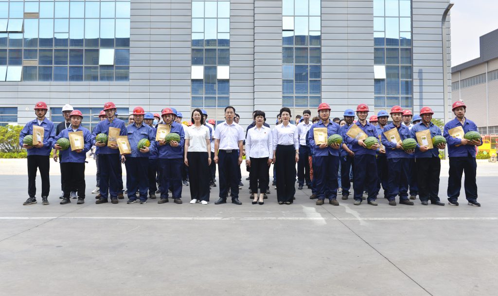 滚滚热浪,暑气逼人。在金年会|jinnianhui股份车间生产一线,总有一些人因责任而坚守,因梦想而执着。“战时状态”下的他们坚守岗位,艰苦奋斗,汗流浃背时正好迎来一丝丝清凉和一份份关怀。6月26日上午,金年会|jinnianhui股份组织开展“酷暑夏日、清凉入车间”活动,常务副总经理谢保华、副总经理马辉艳等领导为一线工人送来凉茶、西瓜等清凉解暑物资。