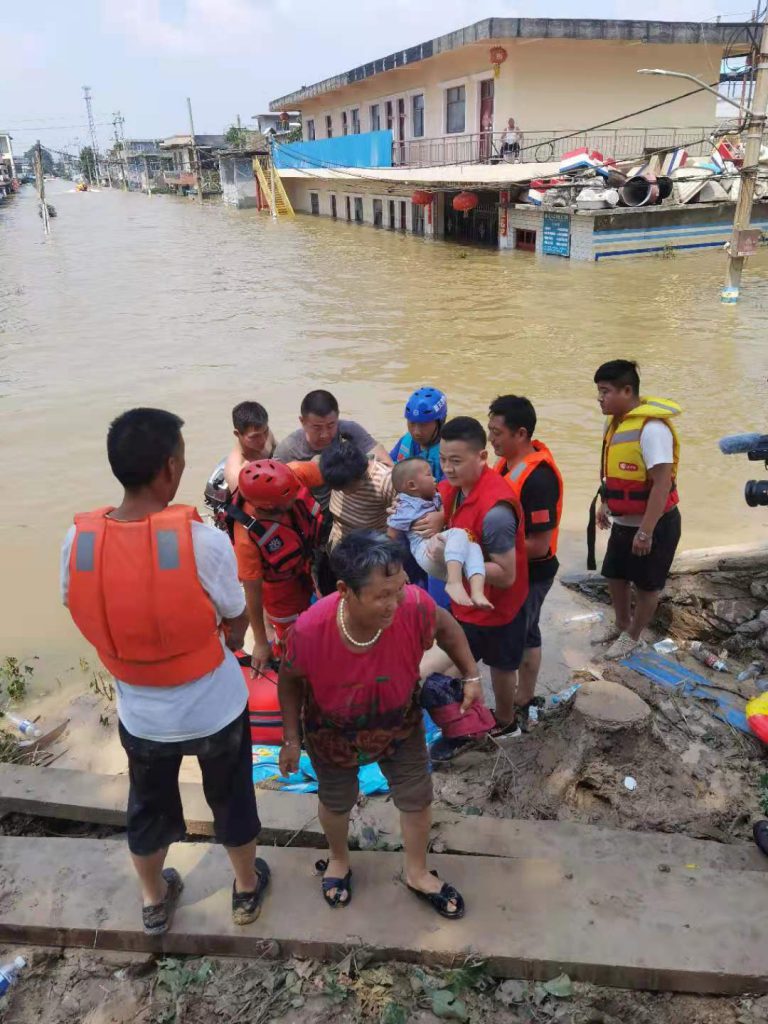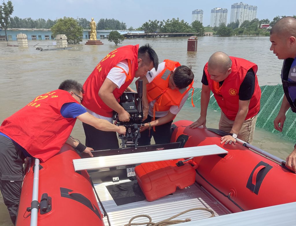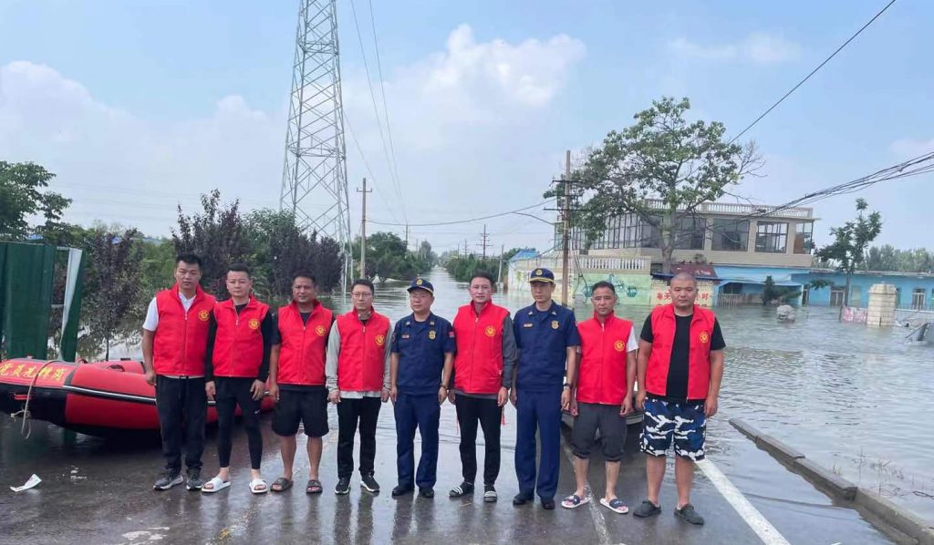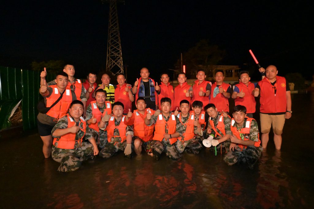 在集团董事长韩红安的号召下,金年会|jinnianhui建工副总经理杨明、金年会|jinnianhui股份物资采购中心总监胡旭、行政管理中心王雅鑫等近20名具备基本救援技能的金年会|jinnianhui人,紧急成立金年会|jinnianhui抢险突击队,在与消防救援单位完成对接后,自备三艘冲锋舟、20余件救生衣、照明设备、药品、补给食物等,于7月23日上午9点赶往寺庄顶村开展紧急救援。