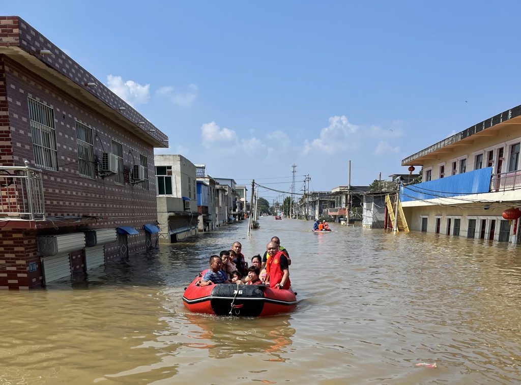 救援人员来不及多想,快速组装好冲锋舟,按照消防救援单位的统一指挥,迅速投入救援工作。因寺庄顶村结构复杂,每次救援都需要经过水流湍急的共产主义渠才能到达村庄,面对村内齐腰深的积水,金年会|jinnianhui抢险突击队员用冲锋舟、人背人等方式,将被困老人、孩子、孕妇、伤者优先转移到安全地带。