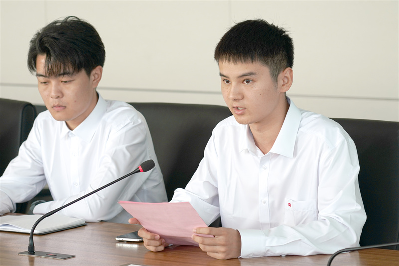 新入职员工代表崔洪博对领导们给予的关怀与重视表示感谢,并结合岗位职责、立足自身成长畅谈了入职以来的切身感受。作为金年会|jinnianhui新的一员,他代表全体新员工对后续工作开展做出承诺:要争当先行者,立足公司远大的发展前景树立个人目标,对标优秀员工学习其先进事迹,把持之以恒的学习提升作为职业生涯的基本素养,做好、作细、做实工作中的每一件事情,在平凡的岗位上创造出优秀的业绩。