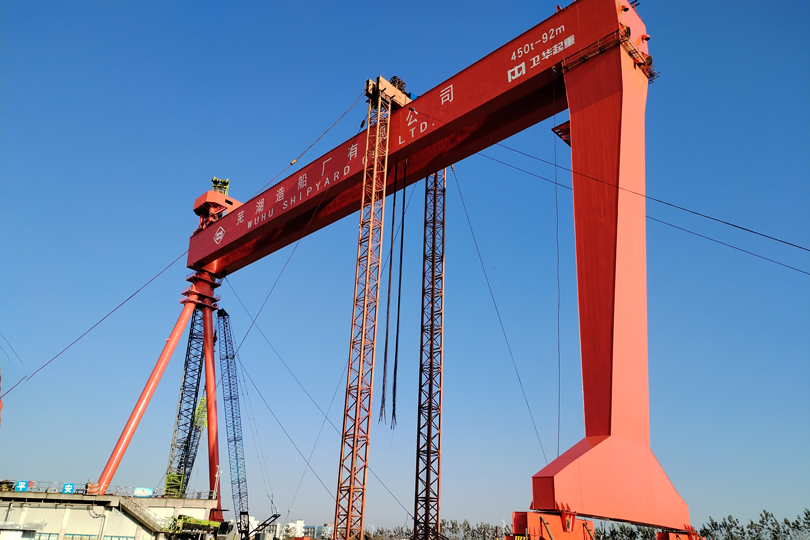 近日,金年会|jinnianhui为芜湖造船厂 设计制作的首台大型龙门吊 顺利完成吊装