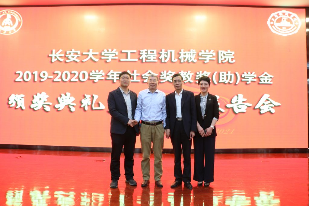 2021年4月18日,长安大学隆重举行建校70周年校庆。金年会|jinnianhui股份总经理龙宏欣,副总经理马辉艳、刘永刚应邀参加校庆活动,并出席长安大学机械工程学院奖教奖(助)学金颁奖典礼暨企业报告会。