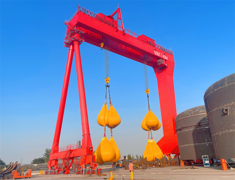 创新为舵!金年会|jinnianhui450吨造船门机顺利吊装